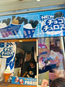 冷たいアイスとチュロスの組み合わせは、歩き疲れたときの糖分補給にもピッタリ。
