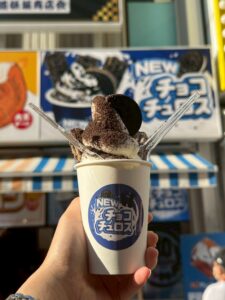 アイスは程よい甘さで、チュロスやオレオと一緒に食べると絶妙なバランスです。