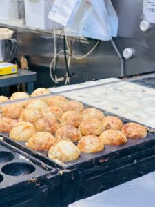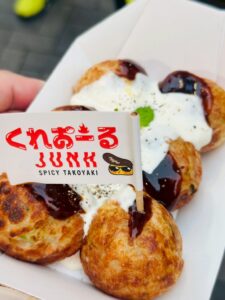 鉄板前では、外国籍と思われる女性店員さんが軽快にたこ焼きをひっくり返していく姿が印象的でした。