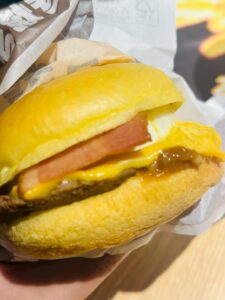 似たように卵を使ったメニューに「エグチ(エッグチーズバーガー)」もありますが、